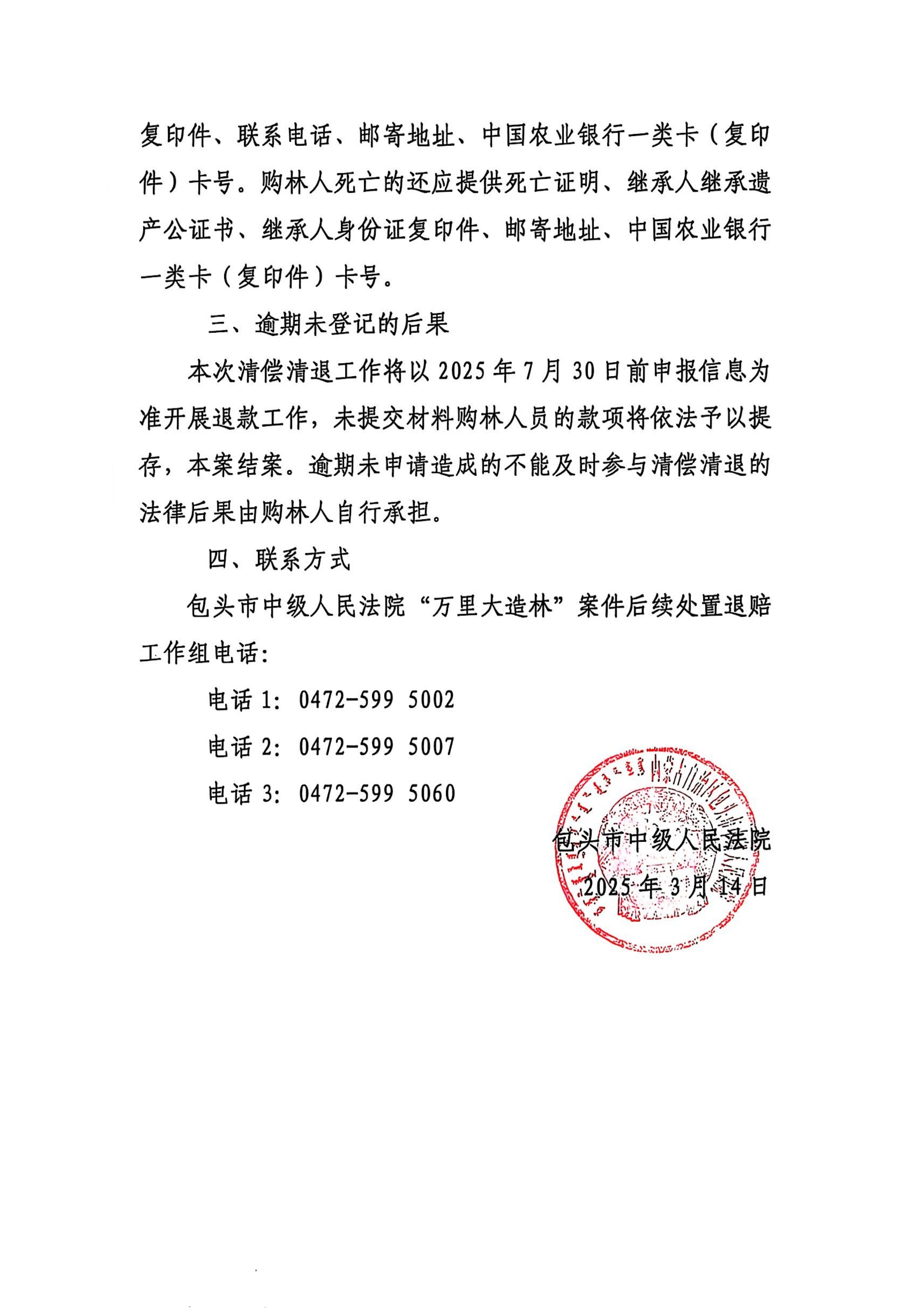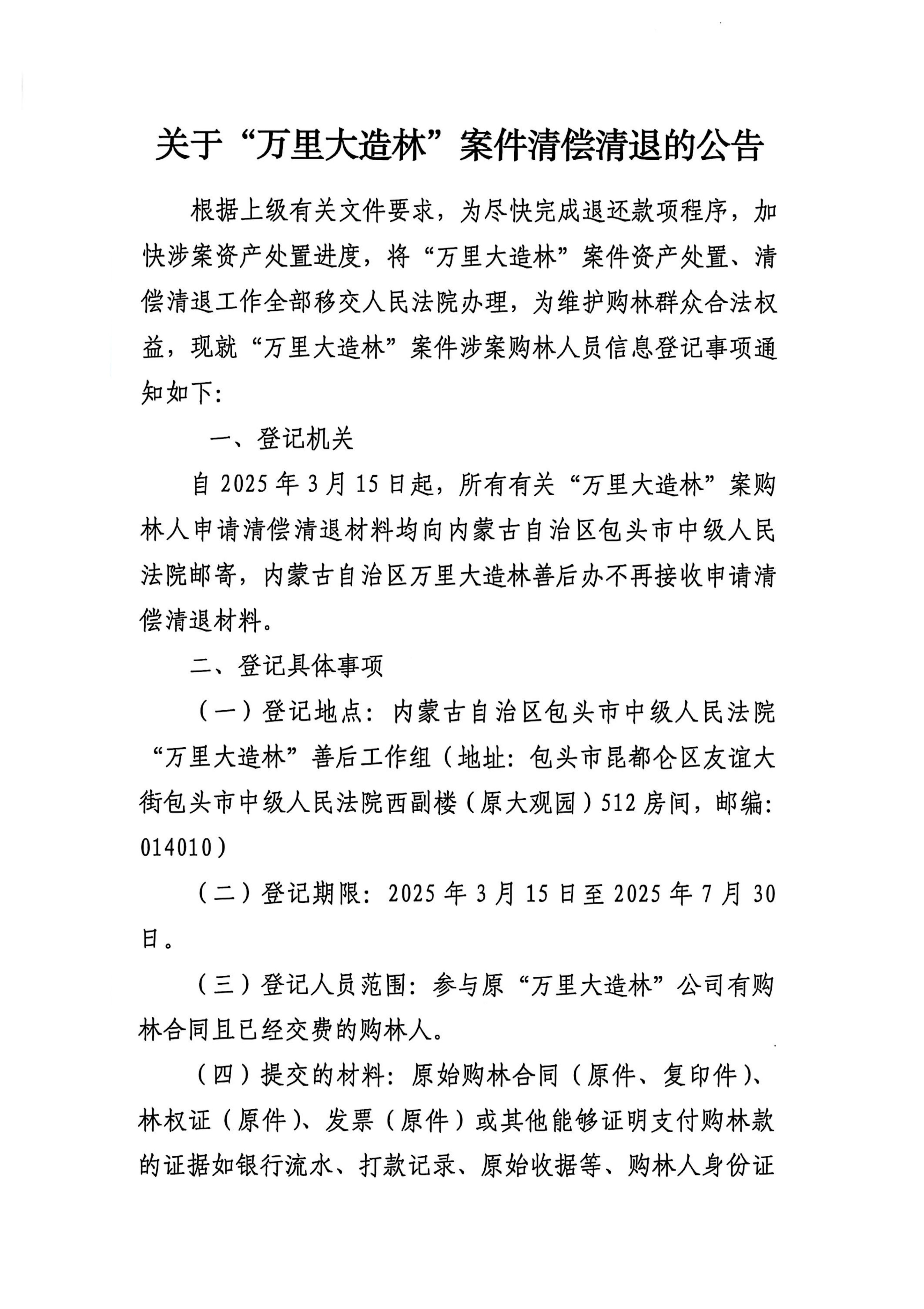 关于“万里大造林”案件清偿清退的公告