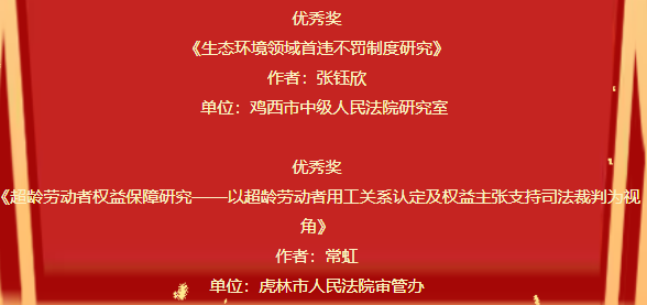 鸡西法院2篇论文入选由最高人民法院主办、中国应用法学研究所承办、《中国应用法学》编辑部具体组织的第二届中国应用法学高峰论坛征文评选活动,获优秀奖。