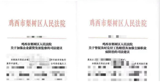 梨树法院执行局在案件执行中主动出击,延伸司法服务职能,发出2份司法建议书,力求从源头化解劳资纠纷,筑牢劳动者权益的司法保护屏障。