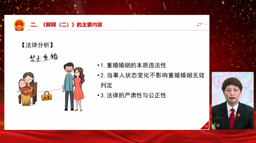 本次课程主要针对人民群众普遍关注的父母为子女出资购房、抢夺、藏匿未成年子女、同居财产分割、夫妻间给予房产、夫妻一方违反公序良俗的赠与、离婚协议将财产给予子女等家事审判中的重点、难点问题,对《解释(二)》重点条文的理解与适用进行逐一解读,坚持在现有法律制度框架内,遵循法律规定本意,旗帜鲜明地弘扬社会主义核心价值观,为审判实践提供裁判依据。