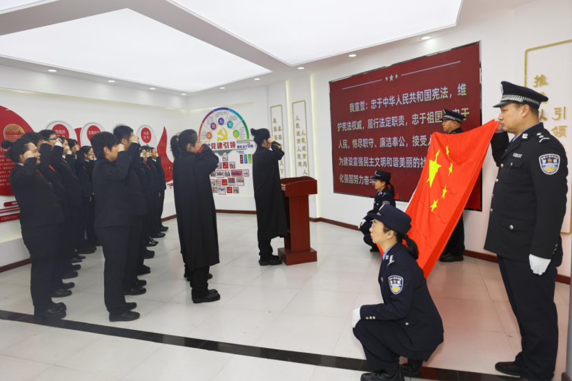 上午9时,鸡西市中级人民法院庄严肃穆的会议室内,新入职、提职、晋升人员整齐列队,面向国旗庄严宣誓。铿锵有力的誓言在会场回荡,彰显着法院干警对宪法的敬畏与忠诚。