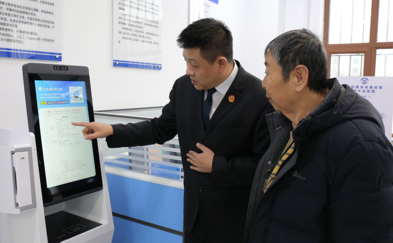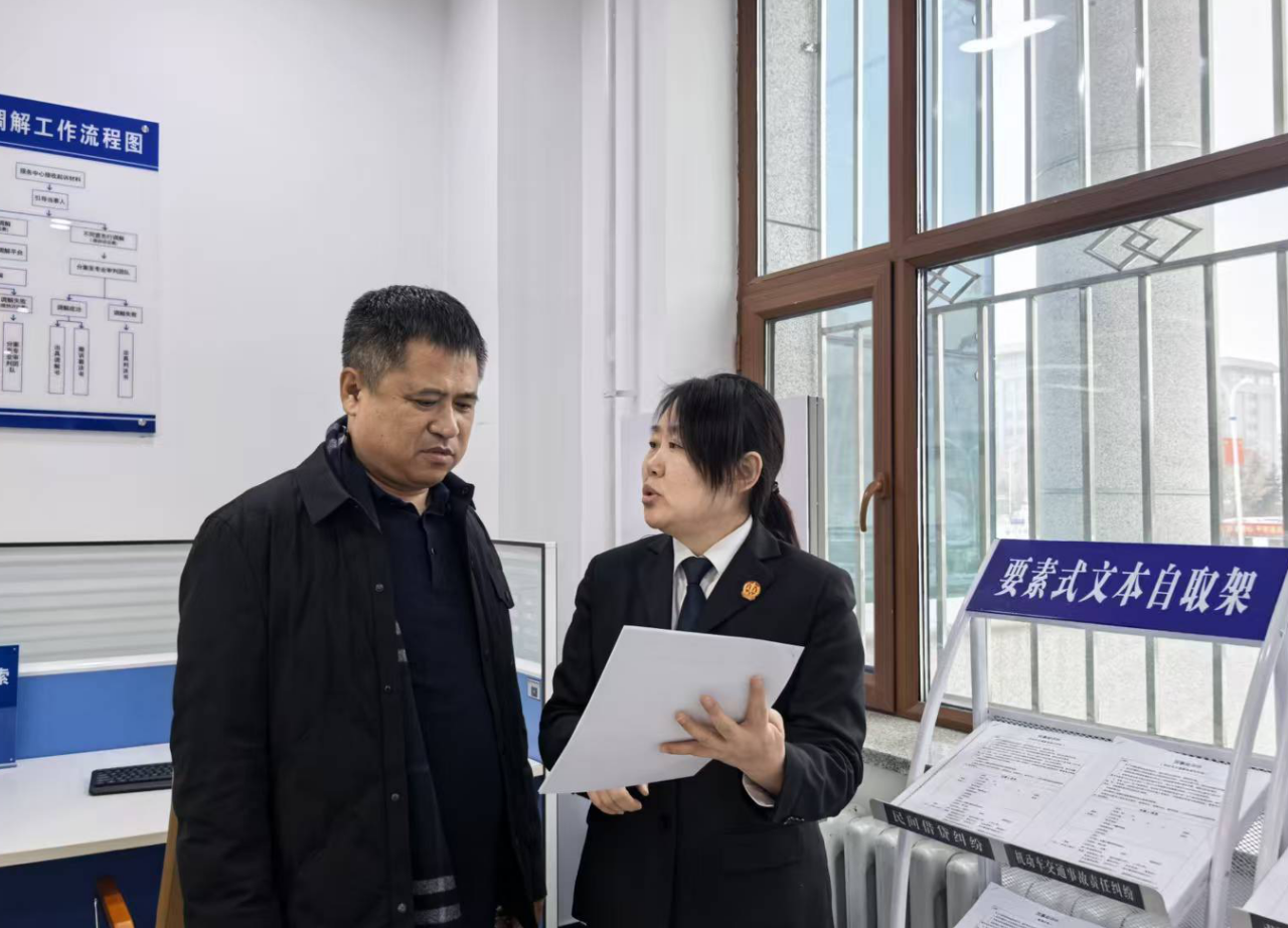 法院在市综治中心设置了“‘两状’示范文本填写服务区”,“要素文本自取架”摆放鸡西地区常见、多发纠纷的示范文本,配备“要素式诉状智能生成机”,当事人可在引导下轻松填写并生成规范文书。这不仅是技术应用,更是将纠纷预防化解的端口进一步前移,从源头降低成讼率的有效尝试。