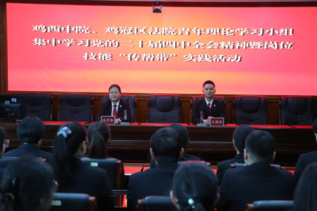 为深入学习贯彻党的二十届四中全会精神,引导全体青年干警统一思想、提高政治站位,夯实服务大局、司法为民的思想根基和业务技能,1月27日,鸡西市中级人民法院联合鸡冠区人民法院开展两级法院青年理论学习小组研学活动,围绕党的二十届四中全会精神开展集中学习研讨和岗位实践。