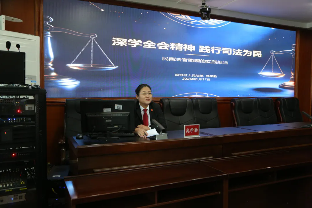 在授课活动中,鸡冠区人民法院副院长庞学勤结合自身学习感悟与青年干警们共同分享了《中国共产党第二十届中央委员会第四次全体会议公报》《中共中央关于制定国民经济和社会发展第十五个五年规划的建议》等内容,详细讲解全会重大意义、精神实质与实践要求。并鼓励青年干警们要深学细悟全会精神,准确把握新时代新征程人民法院的职责使命,切实把学习成果转化为服务大局、司法为民、公正司法的实际成效。