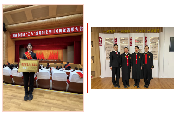 巾帼绽芳华,法徽映初心,近日,鸡西市纪念“三八”国际妇女节116周年表彰大会隆重召开。鸡西中院民一庭凭借卓越的审判业绩、深厚的为民情怀和昂扬的集体风貌,荣获“鸡西市三八红旗集体”荣誉称号。这份荣誉,既是对民一庭全体女干警恪尽职守、公正司法的生动褒奖,也是对鸡西中院妇女工作成效的又一次高度肯定。