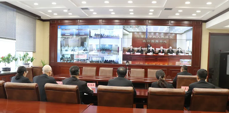 会议以视频形式召开,在中院执行指挥中心设主会场、各基层法院设分会场。中院执行局各部门负责人、各基层法院全体执行干警参加会议。