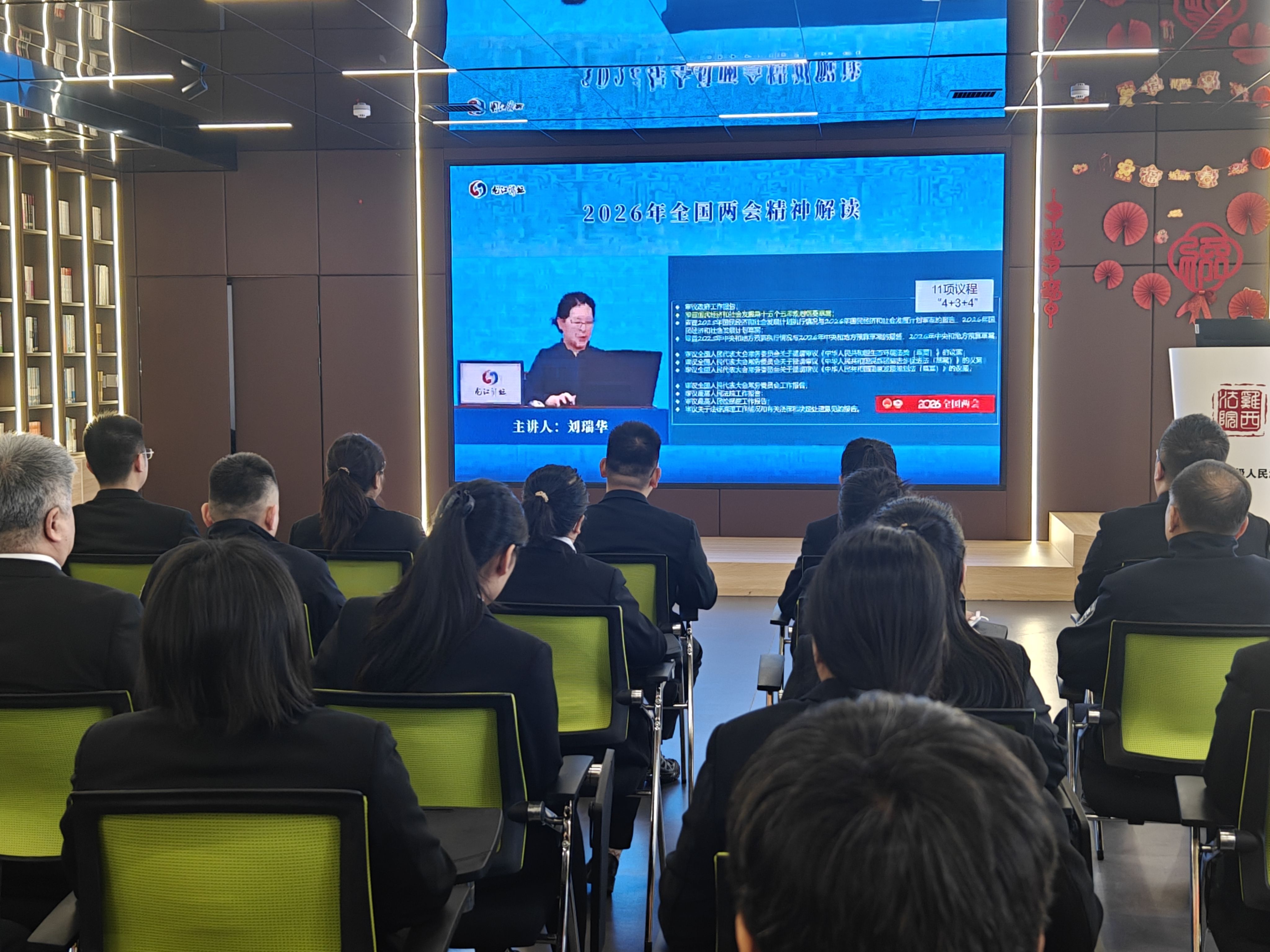 本次宣讲由省委讲师团专家进行专题解读。专家围绕2026年全国两会的核心要义、“十五五”规划关键之年的战略部署,以及法治建设、民生保障等与法院工作密切相关的重点领域,进行了系统深入的阐释。宣讲主题鲜明、逻辑清晰、数据翔实,既有宏观政策层面的全局把握,又有结合实际的深刻思考,为党员干警全面准确理解两会精神提供了有力指导。