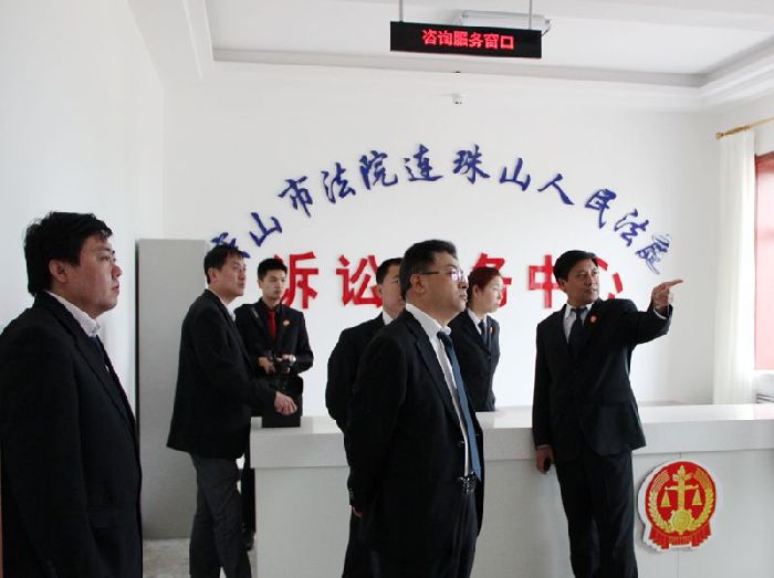 连珠山法庭庭长介绍了该庭基础设施建设和信息化建设情况。目前法庭改建的诉讼服务中心、调解室及法庭文化建设已全面完成,信息化硬件设备、软件系统已全部安装到位,完成了法庭和上级法院的四级联网,信息化管理实现全方位覆盖。视察中,班子成员先后察看了诉讼服务中心、数字化审判庭和候等室、调解室等基础设施,认真检查了数字化法庭的设备运行及四级联网情况,并对发现的问题给予了悉心指导。
